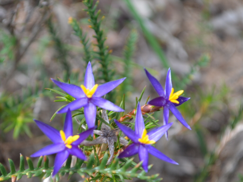 A clumping perennial herb with stunning star shaped blue to purple flowers with bright yellow contrasting centres. Native only to Western Australia, it grows only in a small region in Torndirrup National Park and is listed as critically endangered in the wild. Hardy in the right conditions, it is suitable for containers, gardens and landscape use. The compact habit and interesting foliage make it attractive year round, and the unique flowers create a brilliant display from late Winter through Spring.