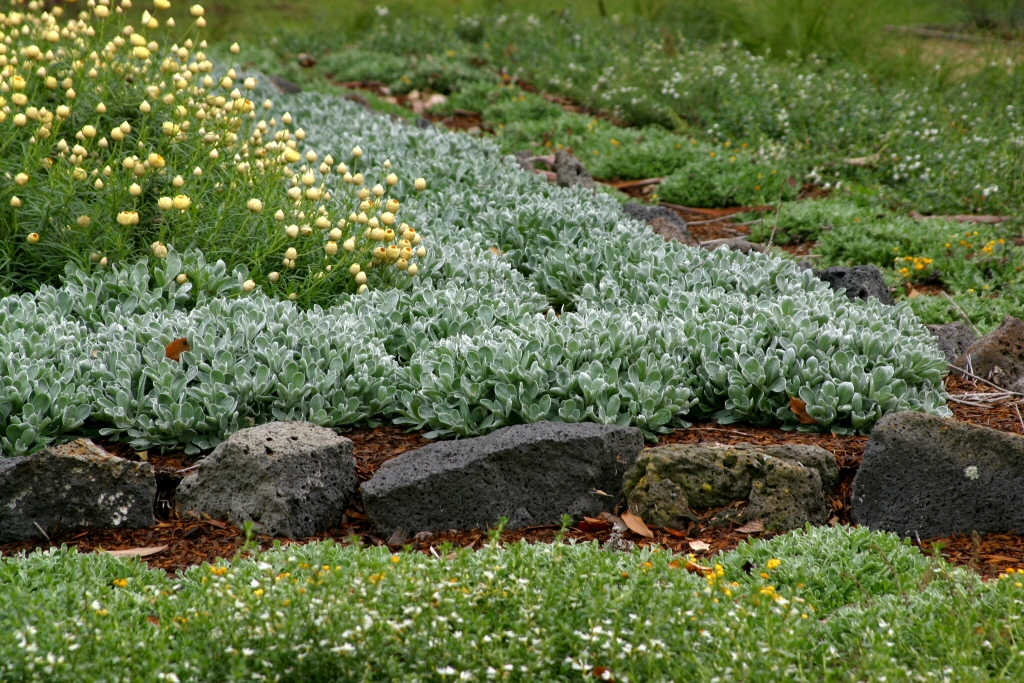 Silver Sunburst is a compact perennial plant, which gives year round delight with the silvery foliage and trusses of small golden papery daisies held low to the plant. Very low maintenance and fast growing. Tolerates frost and dryness. Good for sun and light shade, and for coastal gardens.