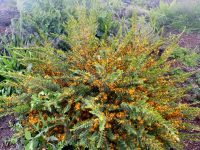 A handsome and dense small shrub growing to one metre high and wide, and with a spectacular spring display of two toned yellow and red-brown pea shaped flowers. The flowers are long lasting and lightly fragrant. It likes well drained soil and sunny spot, and is drought and frost tolerant once established. Also good in coastal gardens and landscaping. Can be used as an informal hedge and screen plant.