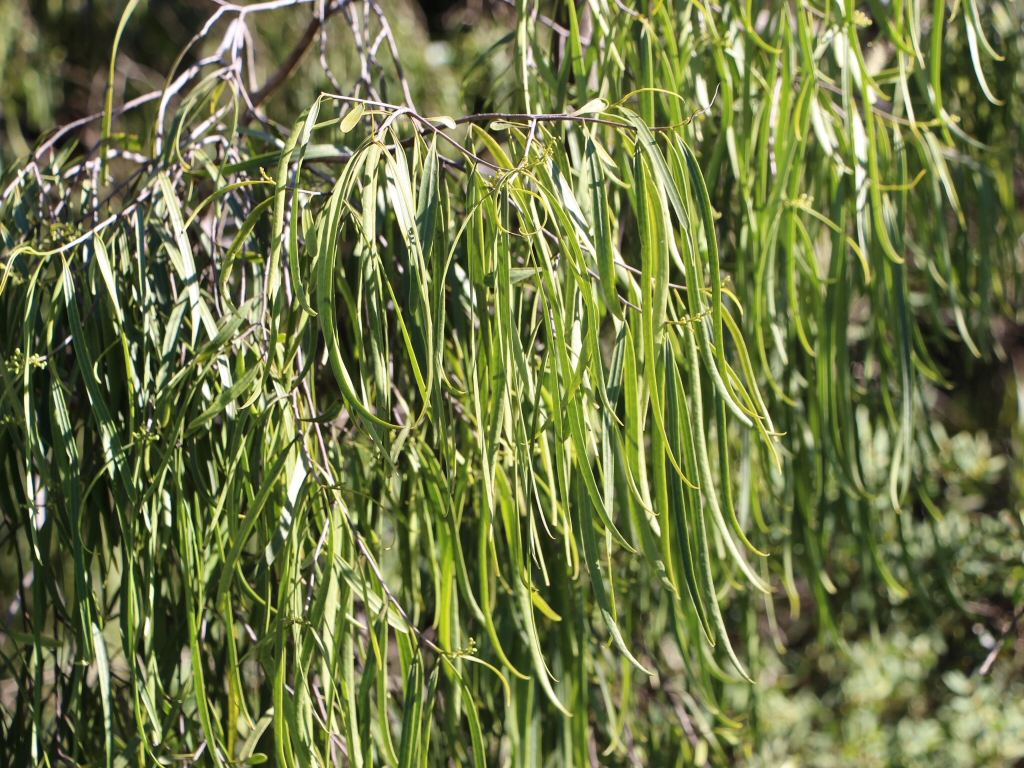 A slow growing small tree from inland Australia, it has attractive drooping foliage and branches which have a strong scent when crushed. It is very drought tolerant, and is a useful tree for shade and on farms for stock feed, and as a street tree for dry areas. The winter to summer flowers are cream and musky scented and can attract blowflies. It is said that leaves can be chewed to alleviate toothache. Can be grown in sun to part shade.