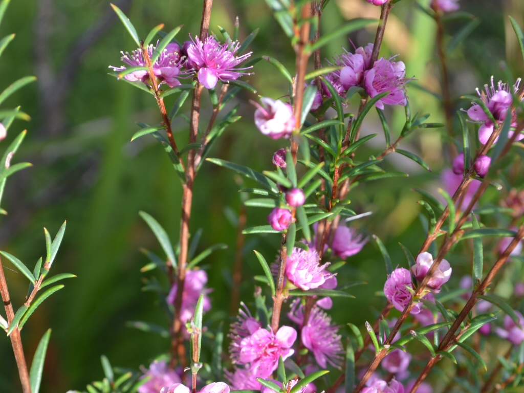 A small shrub growing to around 1.5 metres high with small thin mid green foliage. Flowering from late winter through spring with masses of pink to mauve flowers appear in clusters along the stems. Beautiful when flowering but can be less hardy in humid climates, preferring Mediterranean climates of dry summer and wet winter. Needs well drained soil in full sun or dappled shade and it is tolerant of moderate frost.
