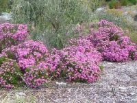 A small shrub with small dark green glossy leaves and masses of magenta pink tubular flowers in spring. A great feature plant for rockeries, borders or pots, and for low hedging. Attracts butterflies. Prune old flowers off when they are finished, and this will help to encourage a more dense growth habit. Feed with a good native fertiliser in spring, watering in well afterwards to avoid leaf or root burn.