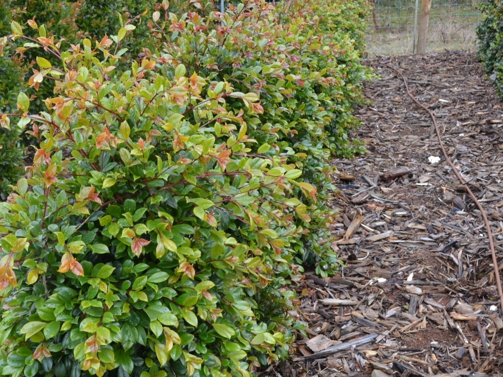 A fast growing and compact cultivar with light green foliage and reddish bronze new growth. Excellent for hedging and screening, for topiary and bonsai. Grows naturally to 5metres tall and 3 metres wide, but can be pruned to the desired size and shape. Psyllid resistant. White flowers in spring followed by edible fruit.