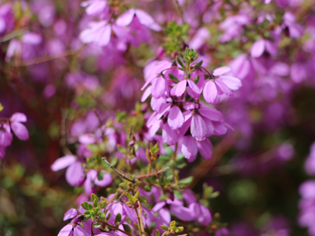 A small shrub that is rather insignificant when not in flower, but is enlivened by bright mauve-pink nodding flowers from winter through to summer. Naturally occurring in NSW, Victoria, South Australia and Tasmania in heathland and sclerophyll forest. Grows in sun to part shade.